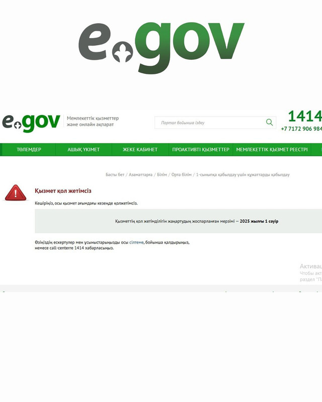 2025 жылдың 1 сәуірінен бастап 1 сыныпқа қабылдау басталады.