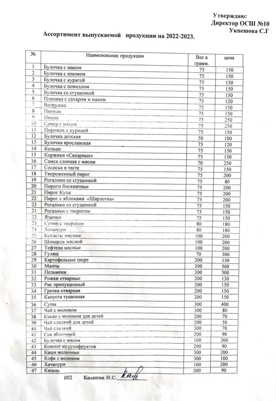 Ассортимент выпускаемой продукции на 2022-2023 год