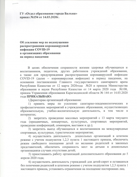 Об усилении мер по недопущению распространения коронавирусной инфекции COVID-19 в организациях образования на период пандемии