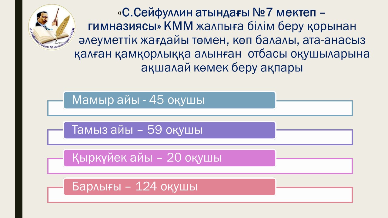 Коммунальное государственное учреждение "Школа-гимназия №7 имени С. Сейфуллина" отдела образования города Балхаш управления образования Карагандинской области