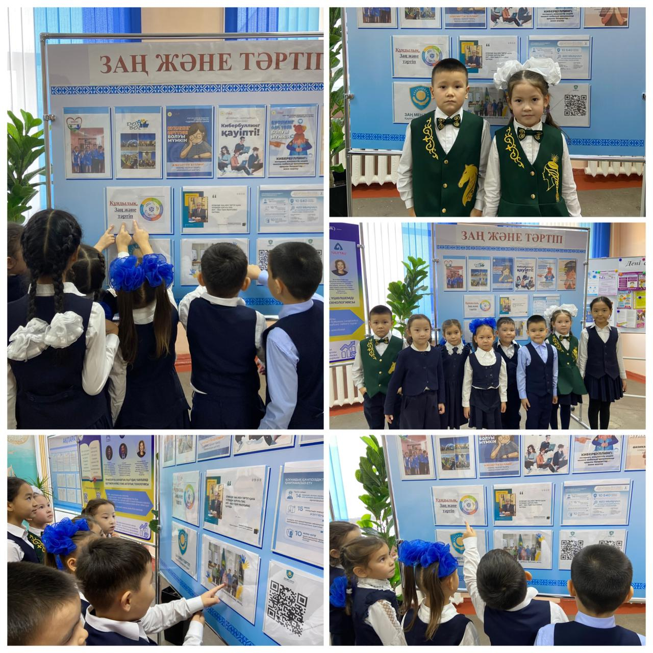 13.01.2026 года в рамках единой воспитательной программы «Адал азамат» и в соответствии с планом работы месячника «Закон и порядок» учащиеся 1 класса были ознакомлены с правовым информационным уголком «Знай свои права».
