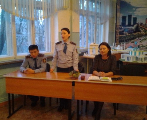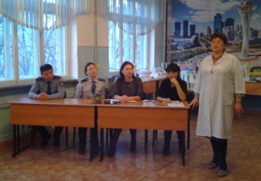Бірінші сұрақ бойынша дінтану пәнінің мұғалімі Б.С.Бейсенбаева сөз сөйледі. ҚЮП инспекторы М.П.Гиджевская кәмелетке толмағандар арасындағы құқық бұзушылықтың алдын-алу туралы айтты. Үшінші сұрақ бойынша "жұқпалы аурулардың алдын-алу туралы" мектептің медбикесі М.Р. Гарайшина сөз сөйледі. Сөз сөйлегендерге сұрақтар қойылды.