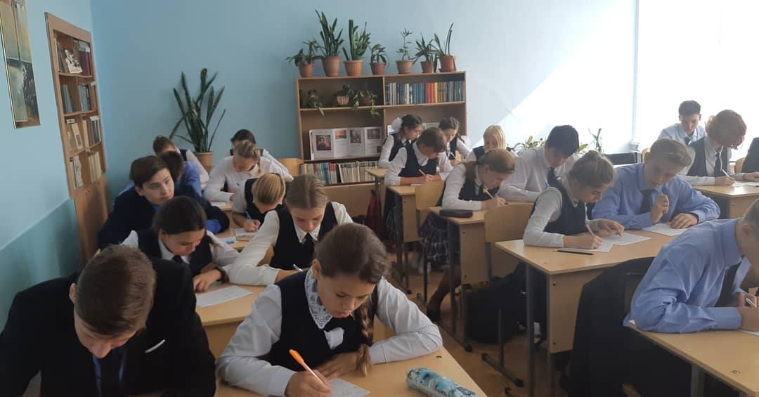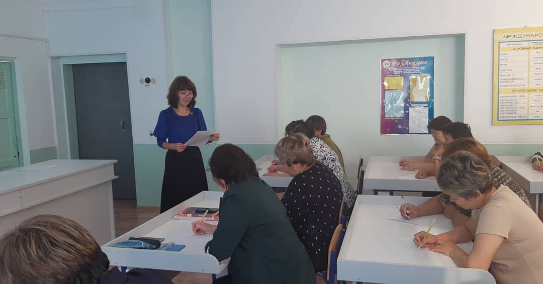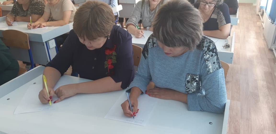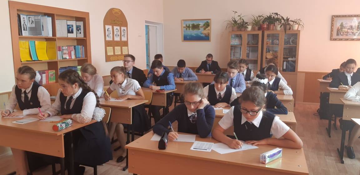 Сегодня, 17.09.2019 года, прошел централизованный общенародный диктант на основе латинской графики. Учителя, ученики и работники школы писали текст под диктовку опытных педагогов.