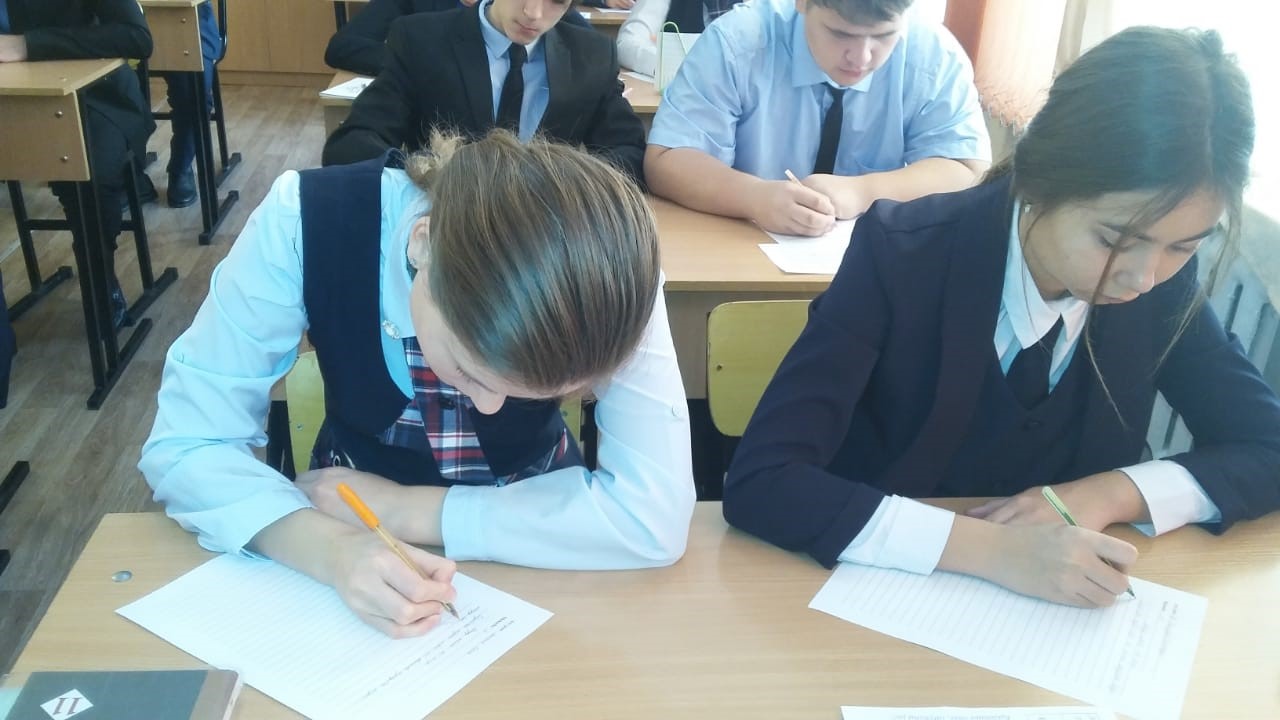 Диктант был проведен в один день и в одно время. В написании диктанта приняли учащиеся 10-11 класса.. О написании диктанта заранее были проведены разъяснительные работы. За 15 минут до начала диктанта обучающимся был разъяснен латинский алфавит и розданы бумаги для написания и алфавит. Для организации диктанта учителями  казахского языка была организована рабочая группа, текст диктанта был трижды продиктован посредством аудиозаписи. Рабочие группы собрав статистические сведения узнали уровень освоения нового алфавита.