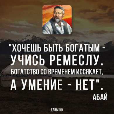"Хочешь быть богатым - учись ремеслу. Богатство со временем иссякает, а умение нет" АБАЙ