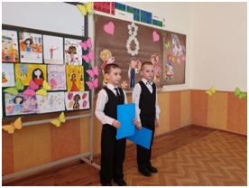Проведены часы общения «Самым милым и любимым!». Праздничный концерт «Букет чарующих улыбок» был подготовлен творческими коллективами школы. Выступали и малыши, и ребята по старше. И, как всегда украшением концертной программы, были номера в исполнении танцевального коллектива «Денс - класс». Участники концерта действительно подарили букет весеннего настроения, улыбок и пожеланий!