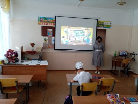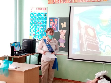 1-сыныптардағы сынып сағаты бірінші мұғаліммен, елдің басты заңымен - ел азаматтары үшін білім алуға кепілдік беретін Конституциямен танысудан басталды. Алғашқы мұғалімдер А.В. Игнатенко мен А. С. Тунгишбаева бірінші сынып оқушыларын білім ордасынан өткізеді. Сынып сағаты барысында балалар Ұлы Абай, ғалым әл Фараби туралы көбірек біліп, бейне және презентацияларды тамашалады. Сынып сағатын өткізу кезінде ойын технологиялары, музыкалық безендіру қолданылды.