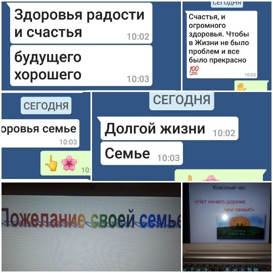 В рамках недели, посвященной Дню семьи в КГУ «ОСШ №10 г. Балхаш» 7.09 2020 года проведены во всех классах часы общения «Нет ничего семьи дороже». Классные руководители подготовили презентации по теме. Учащиеся рассказали о своих семьях. В их рассказах звучала гордость за своих родителей, бабушек и дедушек. Ребята поделились сообщениями о семейных традициях. На классных часах звучали стихи, посвященные семье. При подведении итогов каждый из учащихся написал СМС- пожелание своим родителям, дедушкам, бабушкам и другим родственникам.