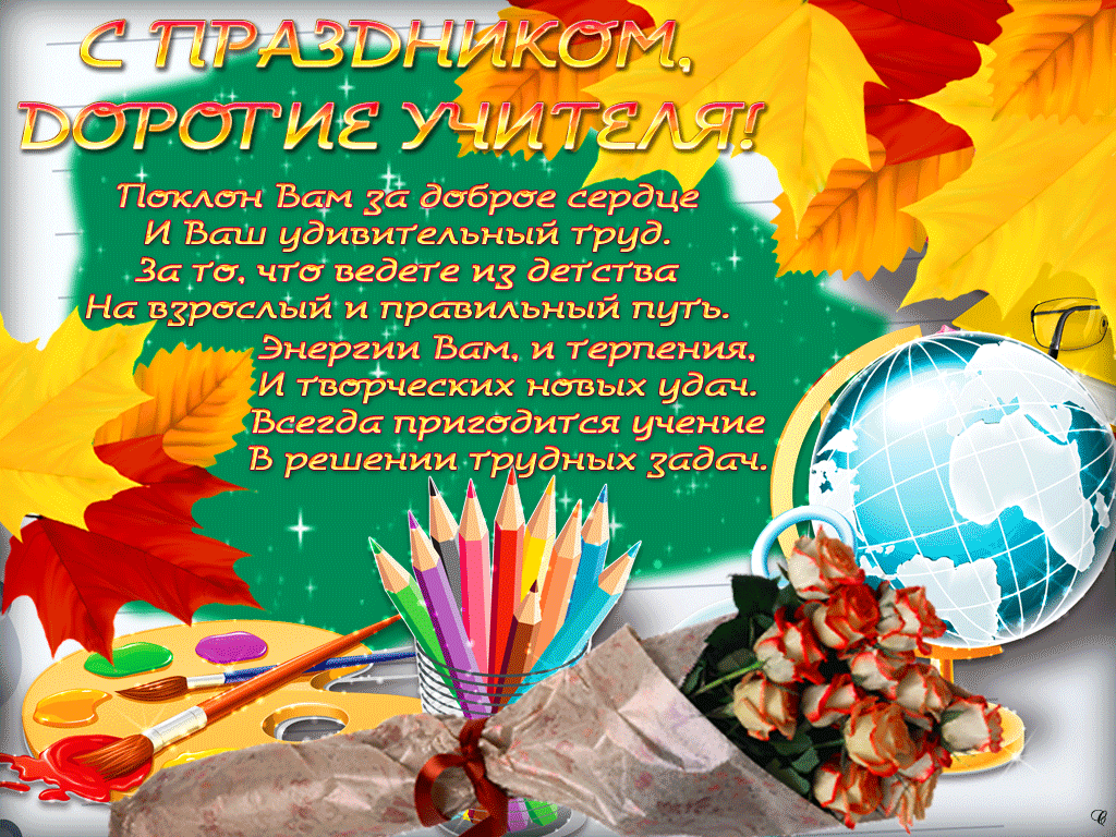 Как много смыслов скрывается в слове «учитель». Для младших ребят этот человек становится одним из самых важных людей в мире, для старших — проводником во взрослый мир. Не каждый человек может стать учителем. Качественно донести материал способен только тот, кто влюблен в свою работу, предмет, легко находит общий язык с детьми. День учителя — это праздник, когда поздравляют педагогов цветами и теплыми словами, благодарят за огромный труд и вклад в развитие детей. В преддверии праздника в школе была оформлена фотозона «С Днем учителя!» с поздравительными открытками, осенними листочками, ученической доской, партой с глобусом и книгами. Ученики 11 класса подготовили видеопоздравление для всех педагогов школы.