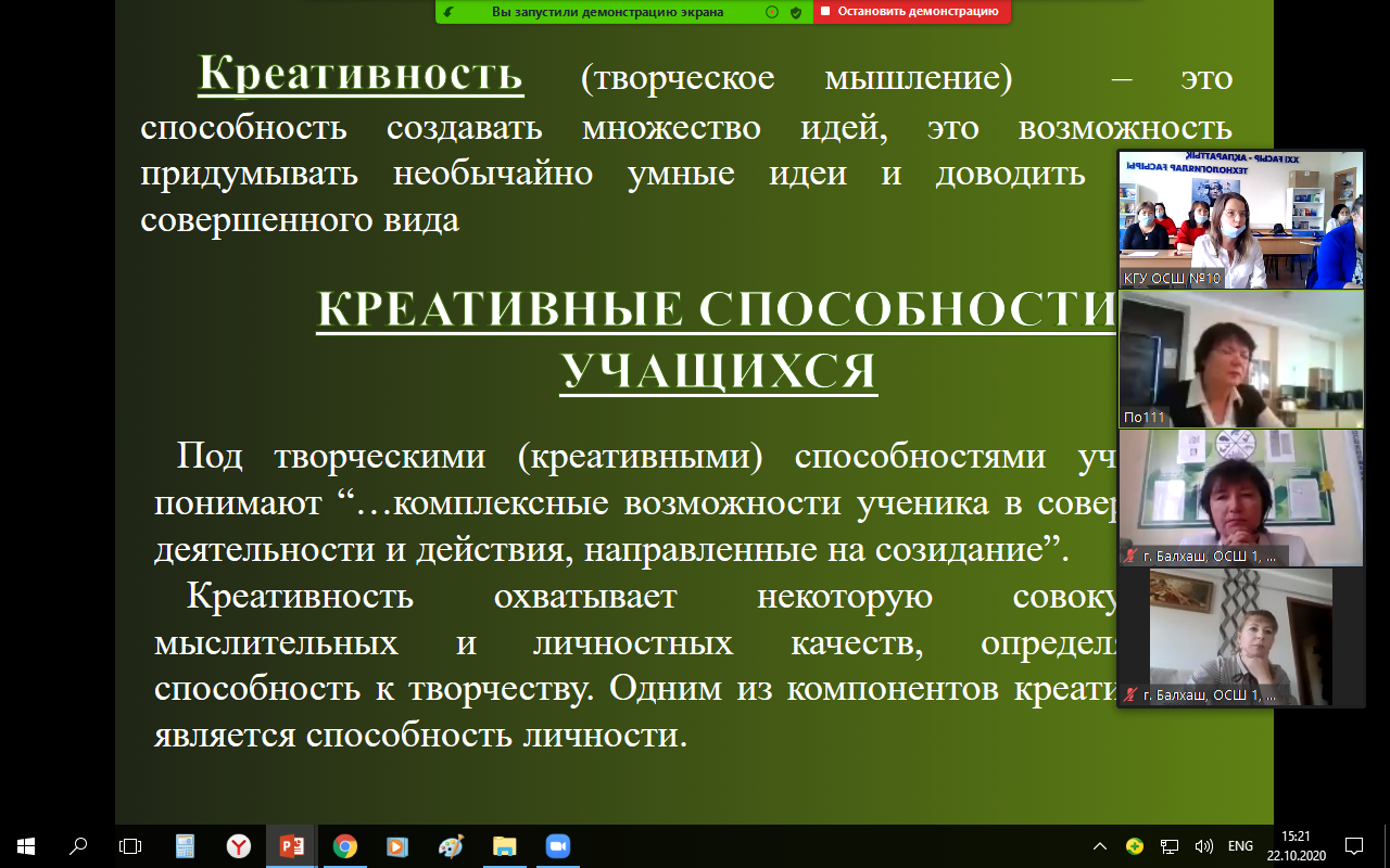 23 қазан, жұма күні № 4 жетекші мектептің "сабақты зерттеуде 4К құралдарын пайдалану"атты қалалық семинары өтті. Семинарға қатысушылар ретінде біздің мектептің педагогтері қатысты: Аманжолова К. Б. - орыс тілі мен әдебиеті мұғалімі; Карипжанова С.К. - Қазақ тілі мен әдебиеті мұғалімі; Орымбекова Ж. К. - ағылшын тілі мұғалімі; Науменко О. В. - музыка мұғалімі; Крюкова А. Д. - педагог-психолог. Олар 4K бағыттарының бірін, атап айтқанда креативтілікті сабақта өз жұмысында қалай қолданатынын айтты.