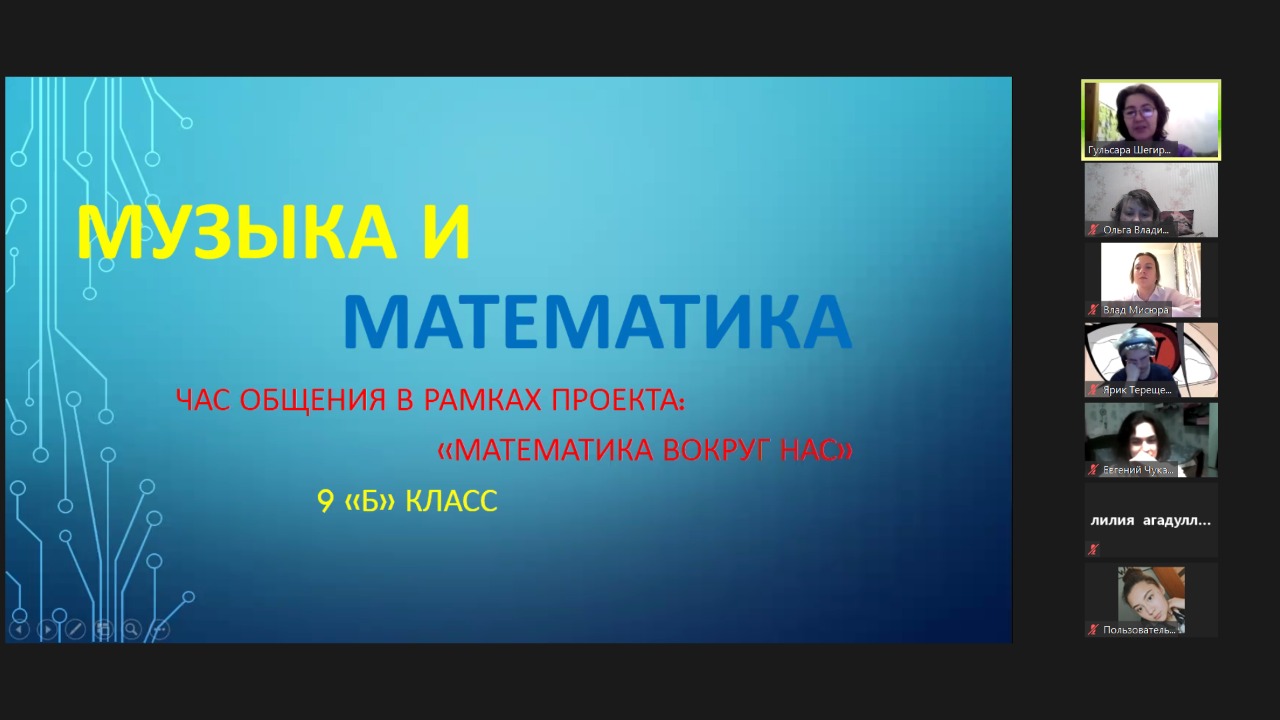 Одним из путей повышения интереса к изучению школьного курса математики является хорошо организованная работа классного руководителя. Так среди учащихся 8-10 классов прошло мероприятие под названием «Музыкально-математическая гостиная», где ребята познакомились с другой математикой: более интересной и живой.