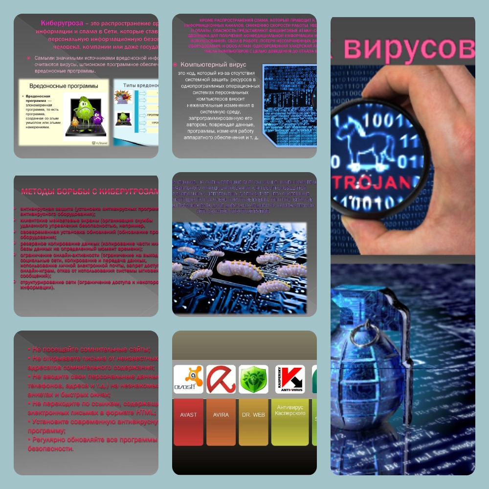 Конкурс презентаций и рисунков организовали учащиеся 5-8 классов на тему «Киберугрозы в сети», «Мобильная безопасность». Цели и задачи данного конкурса: Ознакомить учащиеся с потенциальными угрозами, которые могут встретиться при работе в сети Интернет и научить избегать их; Формирование навыков поведения в информационном обществе с целью обеспечения информационной безопасности и освоить практические навыки работы в сети Интернет; Отработка навыков и умений: сравнения информации, критического анализа; выделения главных мыслей и грамотного их изложение; восприятия и усвоения услышанного; Расширение кругозора учащихся; Формирование информационной культуры.