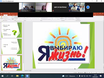 30.09 2021 года учащиеся школы приняли участие в конференции в онлайн формате по теме: «Профилактика наркомании, алкоголизма и табакокурения среди обучающихся школ и колледжей Карагандинской области». Лектор Айсулу Малаева рассказала об истории возникновения понятий «табакокурение», «алкоголь», «наркомания», а также о вредном влиянии на организм человека, особенно молодого. Учащиеся ответили на вопросы лектора, посмотрели презентацию и ролики. Лекция была для юного поколения полезной и поучительной! В конце лекции проведена рефлексия. Учащиеся КГУ «ОШ №10 г. Балхаш» единодушно сказали: «Мы за здоровый образ жизни!».