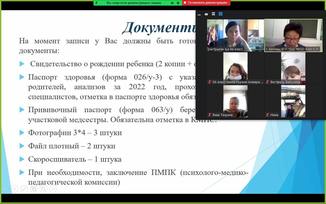 5.02.2022 года прошло родительское собрание в классах предшкольной подготовки. Основными темами собрания были: запись детей в 1 класс; советы и рекомендации психолога при поступлении ребенка в 1 класс. Учителя-воспитатели Ким Клара Ивановна и Рахматуллина Ирина Николаевна ознакомили родительскую общественность с выпиской из приказа МОН РК, в котором прописаны требования к поступлению в 1 класс, перечень документов, необходимых для поступления в школу. Психолог Кайырханова Алуа Оралхановна рассказала родителям о психологической, социальной подготовке ребенка к процессу обучения. Так же учителя ответили на вопросы, которые интересовали родителей.