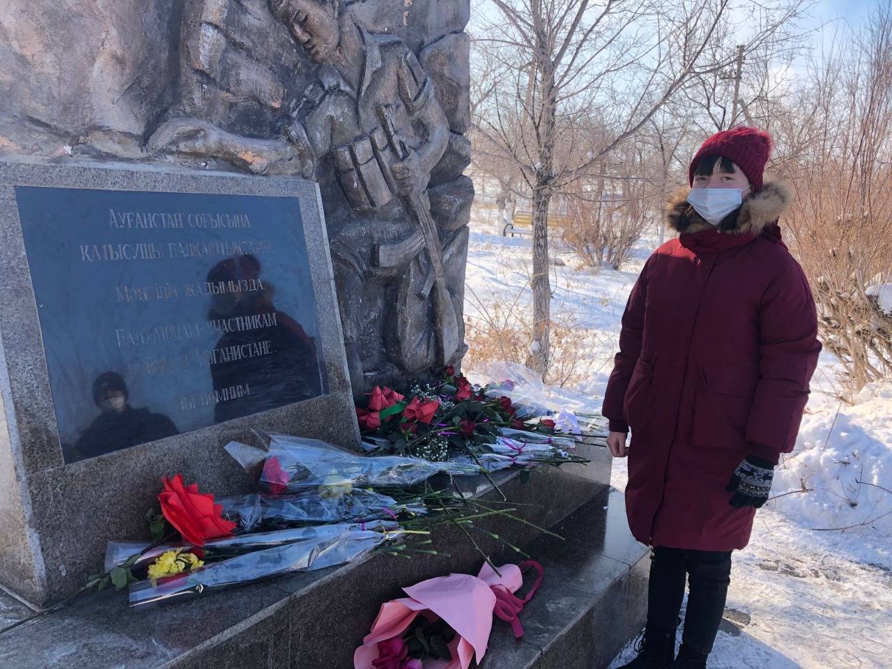 Бұл күні ескерткішке қызғалдақтар мен мектеп парламентінің президенті Рахманова Алеся бастаған жоғары сынып өкілдері әкелінді.