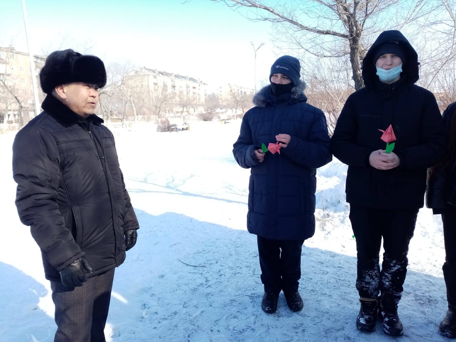 15 ақпан күні 4 "б" және 4 "в" сынып оқушылары өздерінің сынып жетекшілері Е.В. Кузнецова және Т. В. Ваннермен бірге ата – аналарымен бірге өздері жасаған қызыл қызғалдақтарды интернационалист жауынгерлердің ескерткішіне қойды. Бір минут үнсіздікпен қаза болғандарды еске алды.