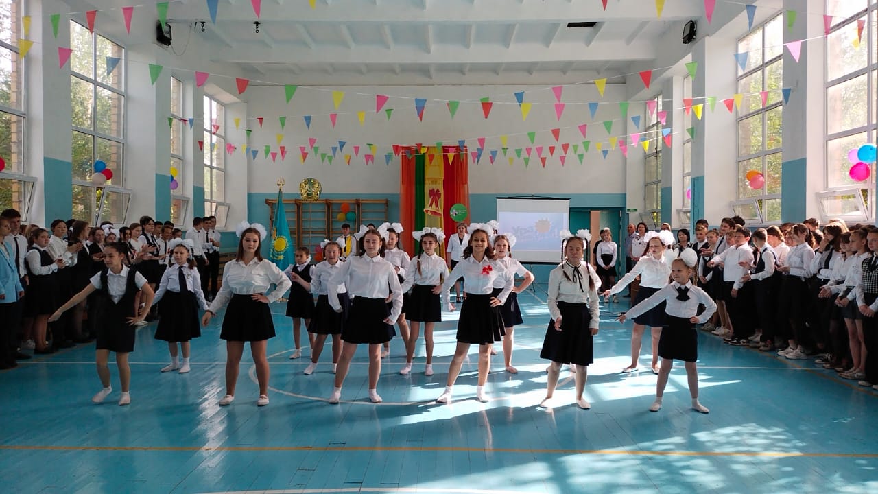 Открыли линейку ведущие ученик 10 «б» класса Маденов Батыр и ученица 8 «б» класса Ершова Элина словами приветствия. В едином исполнении прозвучал Гимн Республики Казахстан.