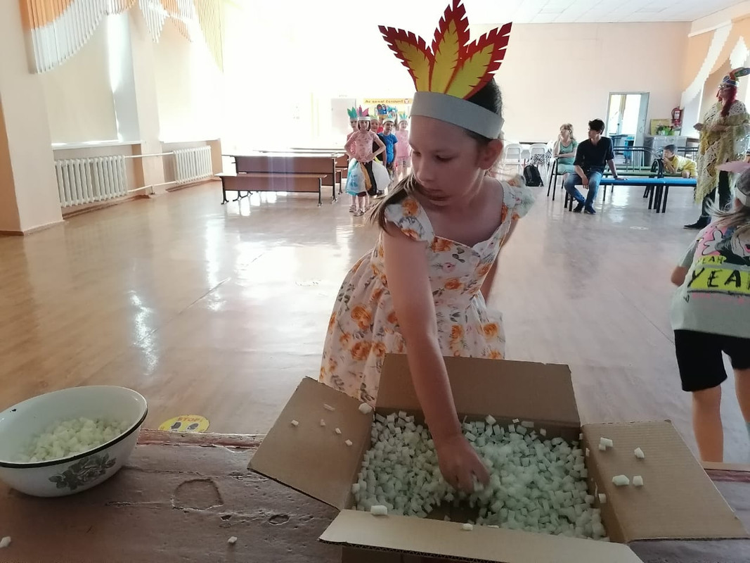 17 июня Солнечный город вновь огласился победным кличем. Индейцы. Вождь ЗоркийВзгляд Четыре Глаза приветствовал ребят по дороге на завтрак. После приема пищи, ребята разделились на 2 племени: Дети Солнца и Дети Луны. Вожди, их Скво и племена сражались за Мир. Начало сражений было в актовом зале большого вигвама, а продолжилось всё на улице. По широким и залитым Солнцем нашего города улочкам шли племена и выполняли задания. Топор войны был закрыт, а сладкий приз был найден и съеден на полдник.
