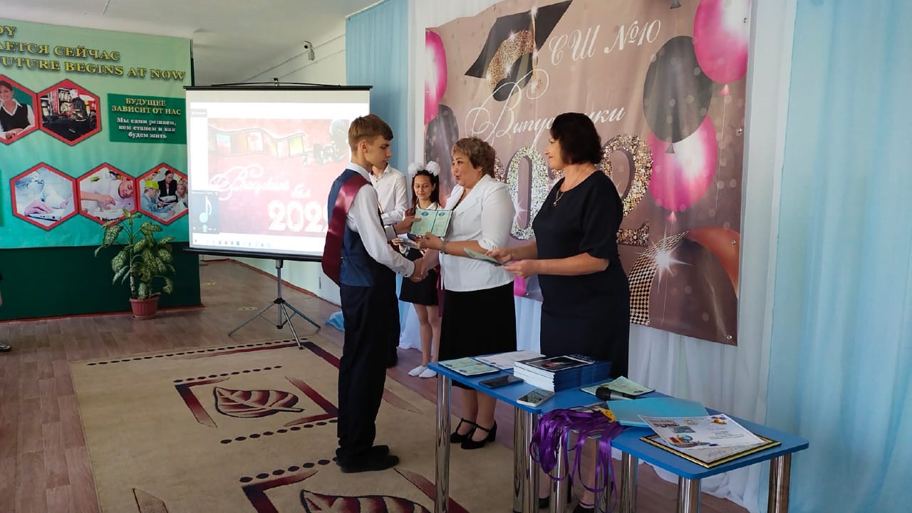 16 июня в КГУ «ОШ №10» состоялась торжественная церемония вручения аттестатов об окончании общеобразовательной школы выпускникам 11 класса. Открыли церемонию ведущие Сокова Анастасия и Лисовский Даниил.