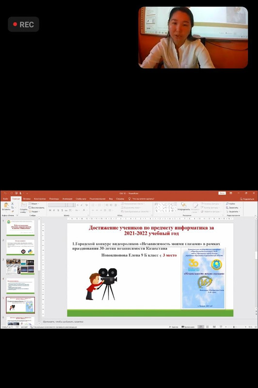Бүгін, 2022 жылдың 26 тамызында, білім беру қызметкерлерінің тамыз педагогикалық конференциясында информатика пәні мұғалімдерінің секциялары арасында біздің мұғалім Смакова Айгерим Бекболатовна мектепте информатика пәні бойынша облыстық, қалалық жобаларды