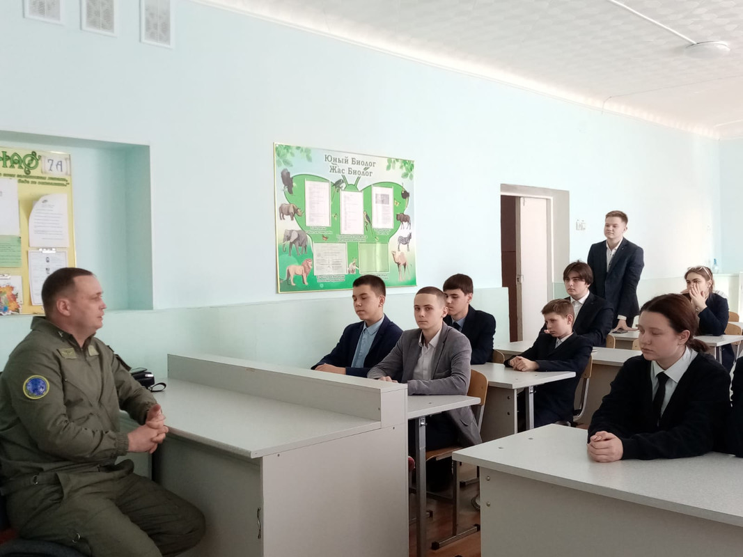 В целях патриотического воспитания и профориентационной работы 20 января 2023 года проведена встреча учащихся школы со ст. летчиком-инструктором майором Ишмаевым К. Г.. Кирилл Геннадьевич рассказал о своей биографии, о специальности, о тех качествах характера, которые нужно воспитывать в себе со школьной скамьи. Наш гость увлеченно рассказал и о том, что работает над созданием музея летной части. Учащиеся 8-11 классов получили ответы на интересующие их вопросы, а их было не мало! Присутствующие девушки поинтересовались: можно ли девушкам поступить в летное училище? Был дан положительный ответ. Во время встречи были названы имена выпускников школы, которые связали свою судьбу с небом: Корешников Р., Мединенов Р.. Завершилась встреча вручением на память фотографии участников встречи с майором Ишмаевым К.Г. Встреча прошла на высоком уровне, учащиеся школы получили информацию о профессии людей мужественной профессии.