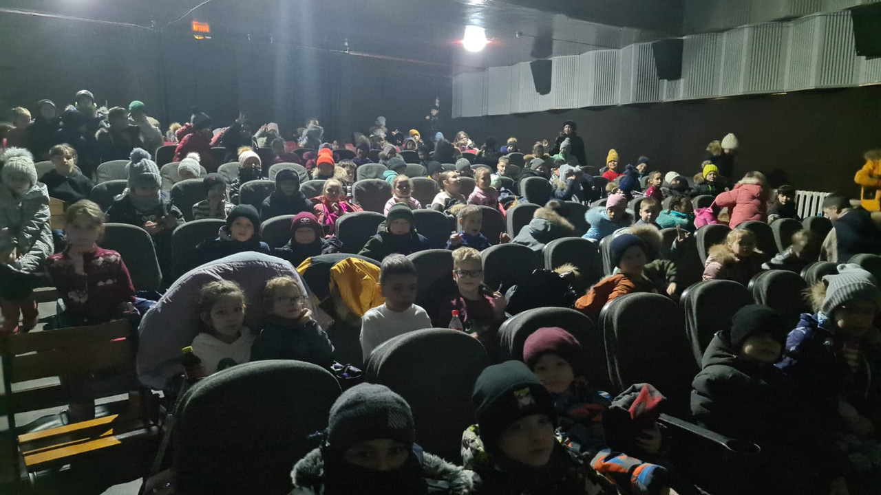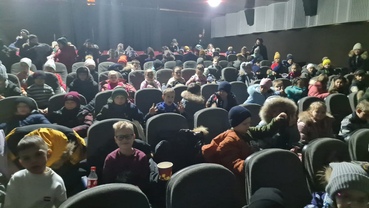 Давно ли вы ходили в кино? Давно ли показывали детям добрые фильмы, раскрывали смысл увиденного? Давно ли наблюдали горькие слезы от душещипательного момента на детских лицах и плакали вместе с ними в темноте кинозала? А приходилось ли вам когда-нибудь слышать хор из 117 детских голосов, которые без репетиции поют все как один песенку Крокодила Гены про день рождения? А вот учителям Игнатенко А. В., Тунгишбаевой А. С., Хасеновой Э. Б., Семак Н. А. довелось все это увидеть и услышать 27 января. Ребята нашей школы сходили в кинотеатр на премьеру фильма "Чебурашка".