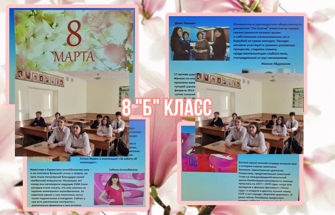 7 наурыз күні таңертеңненмектеп фойесінде әндер шырқалды, үлкен экранда музыкалық бейнелер көрсетілді. 9-11 сынып оқушылары мен 7-8 сынып оқушылары нәзік жандыларды құттықтау сөздерімен қарсы алды.