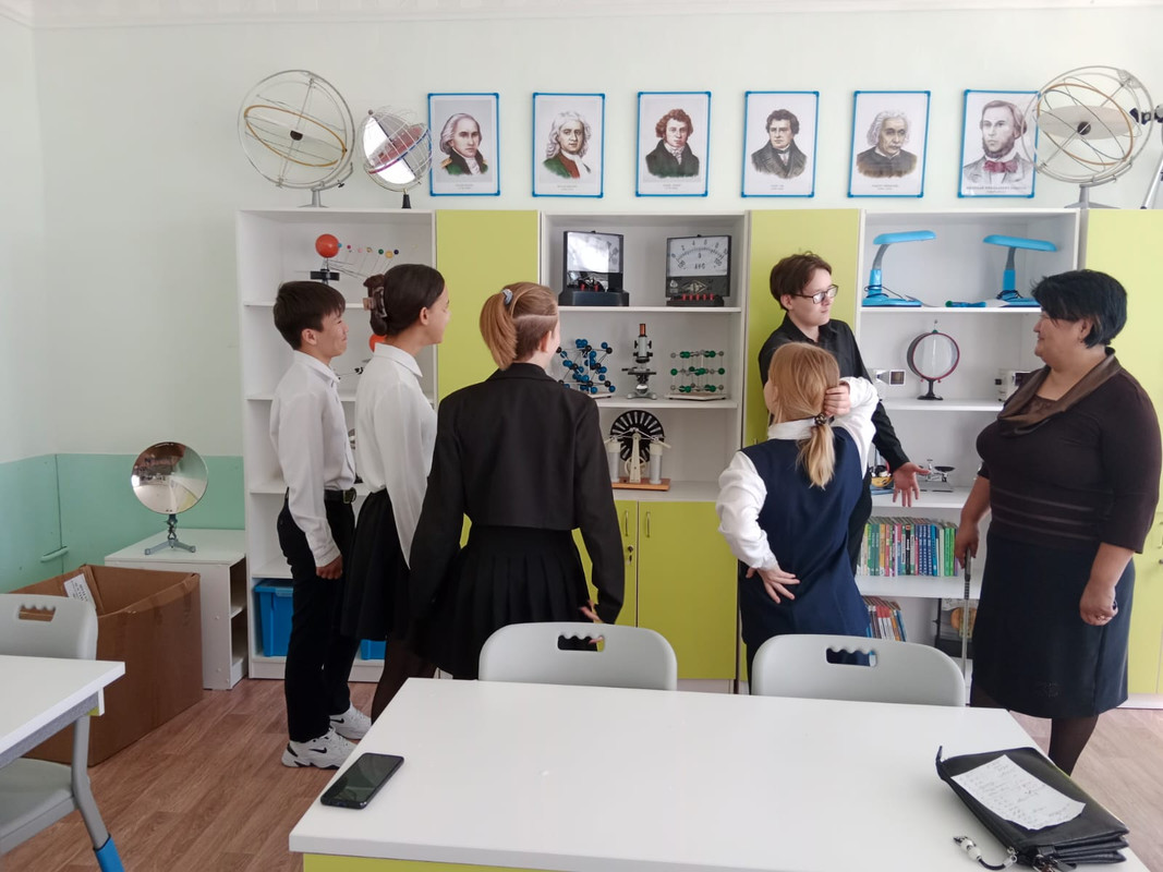 9-сынып оқушылары арасында Г.К. Молдабекова «Ұлы физиктер» тақырыбында қарым-қатынас сағатын өткізді. Мақсаты-тиімді қарым-қатынасты жетілдіру, қызығушылық пен ой-өрісті дамыту; физикадағы негізгі материалды қайталау.