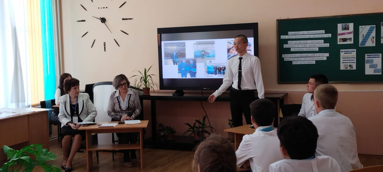 С большим интересом учащиеся слушали выступление Адиля об учебе в политехническом колледже. Адиль также рассказал о своей общественной работе. Ростислав добавил рассказ Адиля о специальностях, которым обучают в политехническом колледже и рассказал о своем увлечении. Ростислав играет в сборной хоккейной команде города «Бертыс». Ростислав провел спортивную викторину и вручил победителям шайбу с памятной надписью. Завершилась встреча вручением фотографий учащихся с гостями.