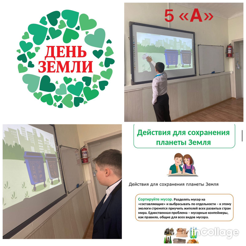 17 апреля 2023 года в день открытия Недели экологической грамотности «Жасыл Қазақстан» во всех классах проведены классные часы, темы которых были самыми разнообразными. Классные руководители вместе с активом подготовили презентации, видеоролики, стихи, музыку по экологии. Учащиеся начальных классов совершили путешествие в удивительный мир комнатных растений, послушали звуки родной природы, узнали о многообразии крылатых. В 5 – 8-ых классах состоялся разговор о бережном отношении к природе «Нас много- Земля одна».