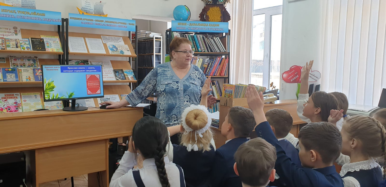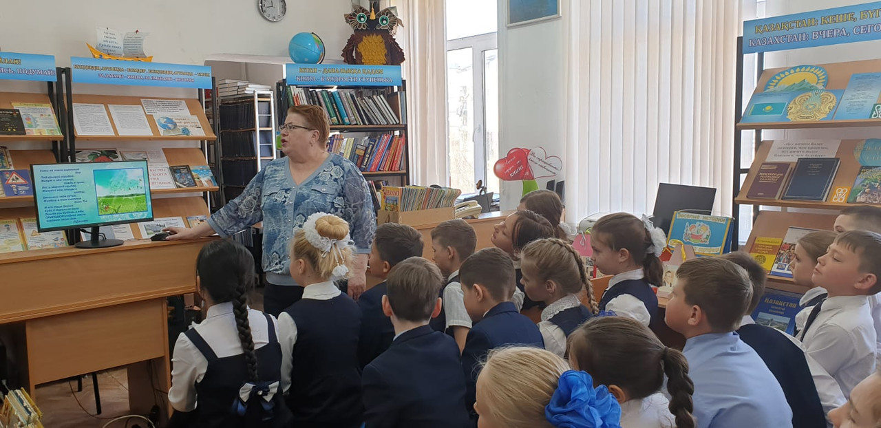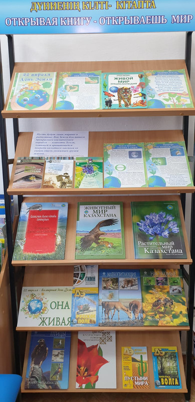 В начале мероприятия библиотекарь Куприянчик Н.Н., рассказала присутствующим школьникам об истории праздника, о традициях Дня Земли, о символах праздника – эмблеме, флаге и колоколе мира, объединяющем население планеты в деле защиты окружающей среды. Так же ребята узнали об экологическом состоянии нашей планеты, познакомились с Красной книгой Казахстана, узнали об охраняющих территориях Казахстана, познакомились с творчеством великих просветителей А. Кунанбаева и Ы. Алтынсарина, воспевавшие на века красоту родного края, сумевшие отразить в своих произведениях красоту её природы через свой неповторимый поэтический мир.