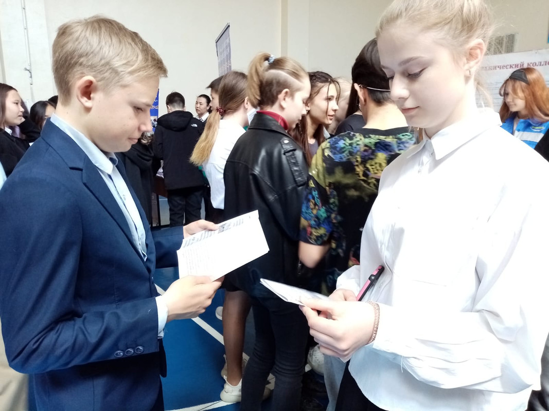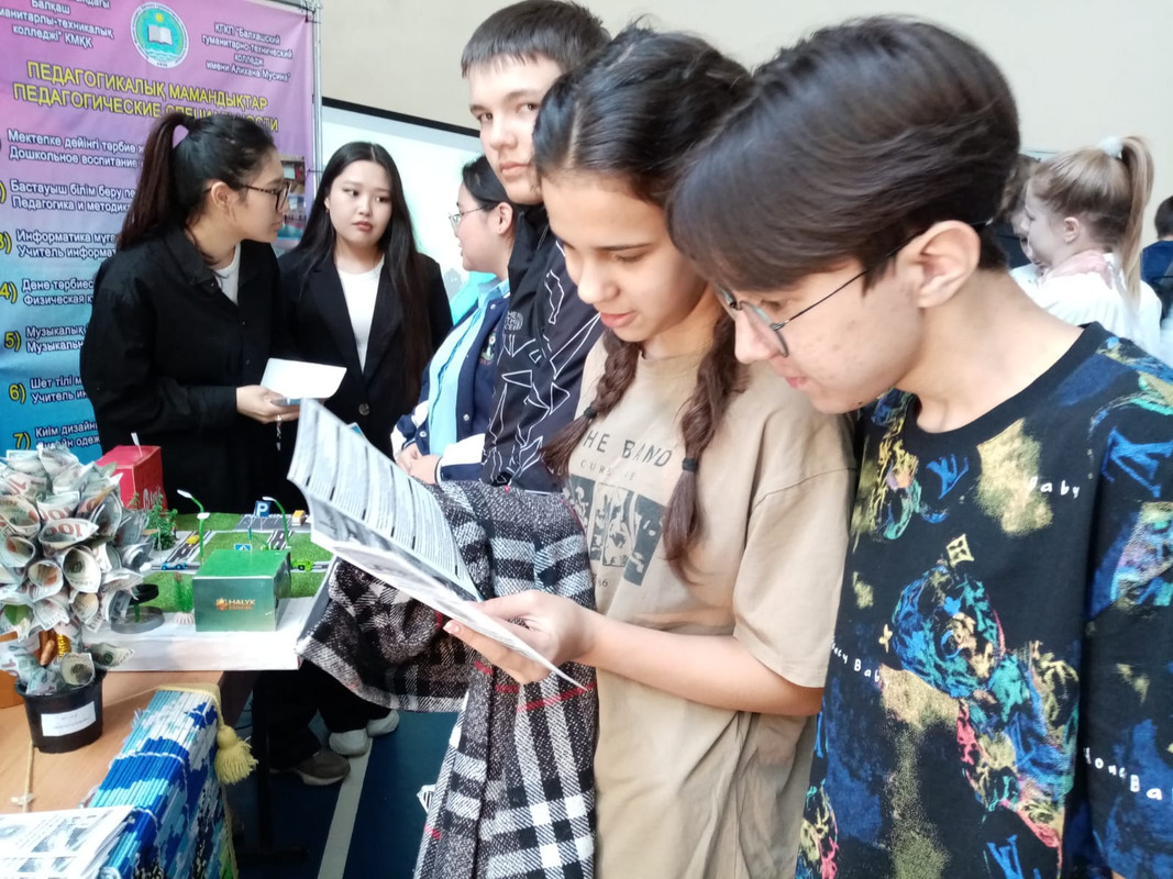 21 апреля во Дворце школьников прошла Ярмарка профессий, на которой состоялась презентация колледжей города Балхаш: БГТК, БМК, БТК, БКС, политехнический. Студенты и преподаватели рассказали учащимся школ о своих колледжах, о специальностях, которым обучают здесь. Были проведены и практические работы, например, медколледж предложил желающим узнать свою группу крови, научиться правильно бинтовать при ушибах головы, порезах пальцев. Студенты педагогического отделения БГТК сопровождали свою презентацию игрой на домбре. Каждый колледж старался заинтересовать будущих студентов! Ярмарку посетили не только учащиеся 9-ых, но и учащиеся 8-х классов нашей школы с целью ранней профилизации.