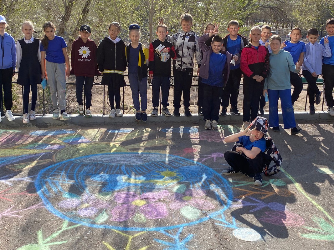 28.04.2023 жылы 3-4 сынып оқушылары мектеп ауласына өздерінің қиялын көрсету және «Сен менің Отанымсың! Менің Қазақстаным!» асфальттағы суреттер байқауына қатысудан ерекше көңіл күй алу еді. Қандай керемет суреттер шықты! Балаларды ұйымдастырғаны үшін сынып жетекшілеріне рақмет!