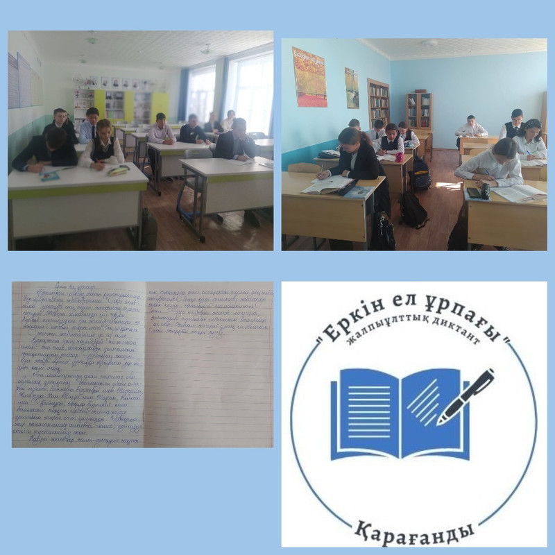 4 апреля в рамках празднования 7 мая, 9 мая - Дня Победы учащиеся 5-11 классов, учителя школ провели общенациональный диктант на тему «Еркін ел ұрпағы».