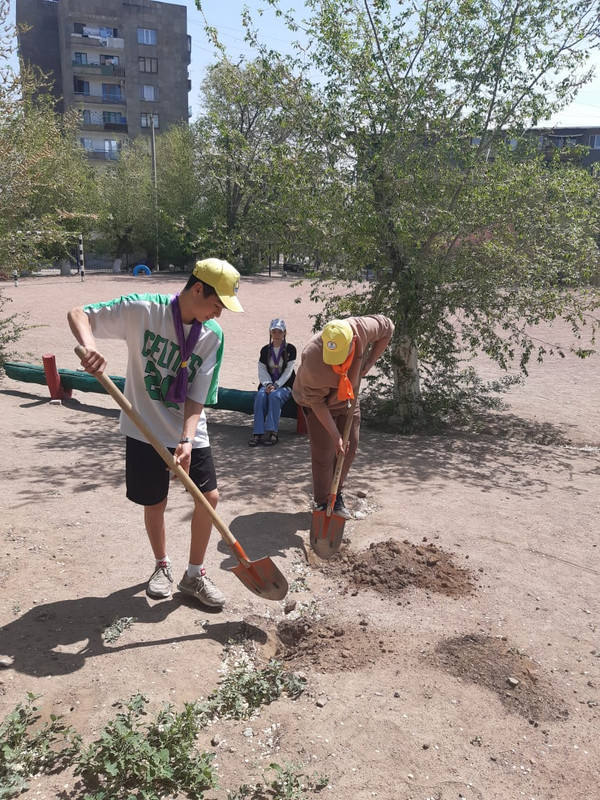 13.05 мектеп жанында челленджге қатысушылар жиналды. Барлығының ерекше белгілері болды: сары бейсбол қалпақтары және түрлі-түсті галстуктар. Акцияға қатысушылар учаскелер бойынша бөлінді. Ұлдарға жұмыс күшіне сеніп тапсырылды: олар шұңқырларқазып, су алып жүрді. Қыздар көшеттерді отырғызып, оларды діңінен ұстап тұрды, ал ұлдар шұңқырларды жермен жауып тастады. Әрине, жаңа ағаштарды суаруды ұмытпаңыз! Олар тамыр жайып, барлығын жасыл желектерімен қуантсын!