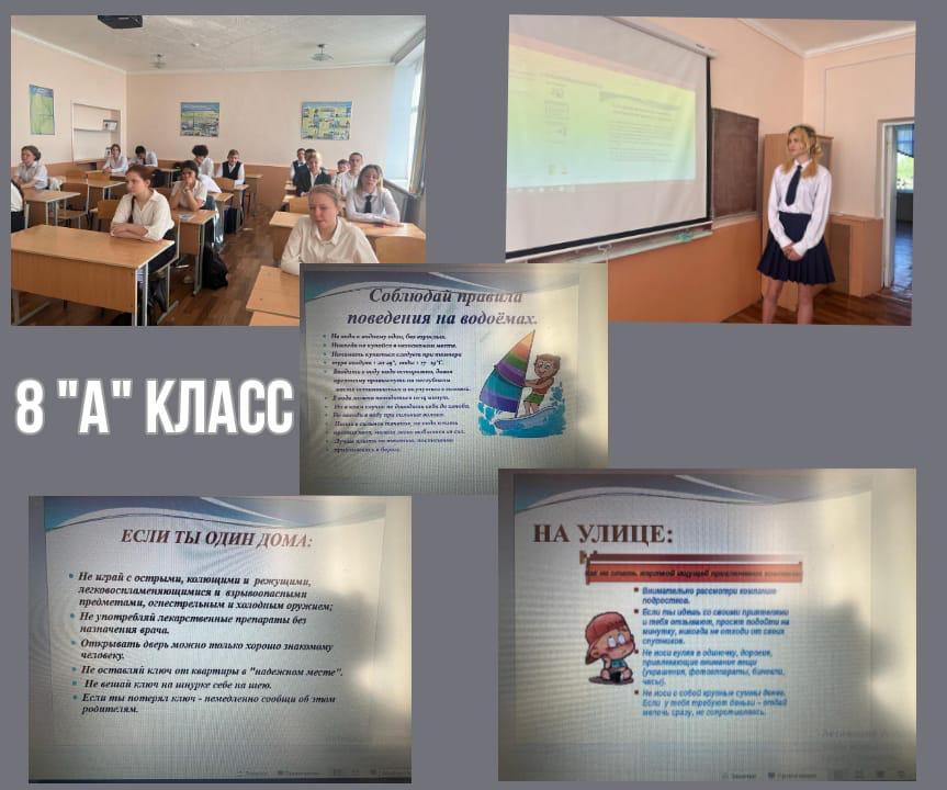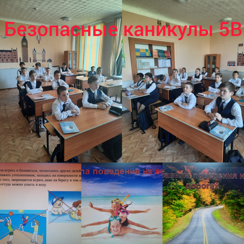 Скоро, совсем скоро наступит самая любимая пора школьников-летние каникулы. У ребят будет много свободного времени. Они будут заниматься различными делами: играми, спортом, помогать родителям на дачах, но и будет у них свободное время для отдыха, развлечений. Чтобы летний отдых не принес огорчения, необходимо соблюдать правила безопасного поведения: на улице, дома, на природе и т.д. И об этом шел разговор на классных часах 22 мая «Безопасные каникулы». Классные руководители вместе с активом классов подготовили видеоролики, презентации. Были рассмотрены правила поведения при различных ситуациях.