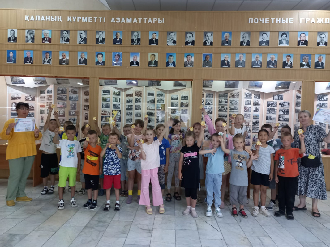 22 июня дети, отдыхающие в пришкольном лагере посетили Балхашский городской краеведческий музей, где им была предложена квест-игра "Музейные тайны". Все задания игры были очень занимательные и связаны с историей нашего родного края. На последней станции экскурсоводами была проведена игра "Кто внимательный?" - она была самой интересной для всех детей. В конце игры всех детей ожидали сладкие подарки.