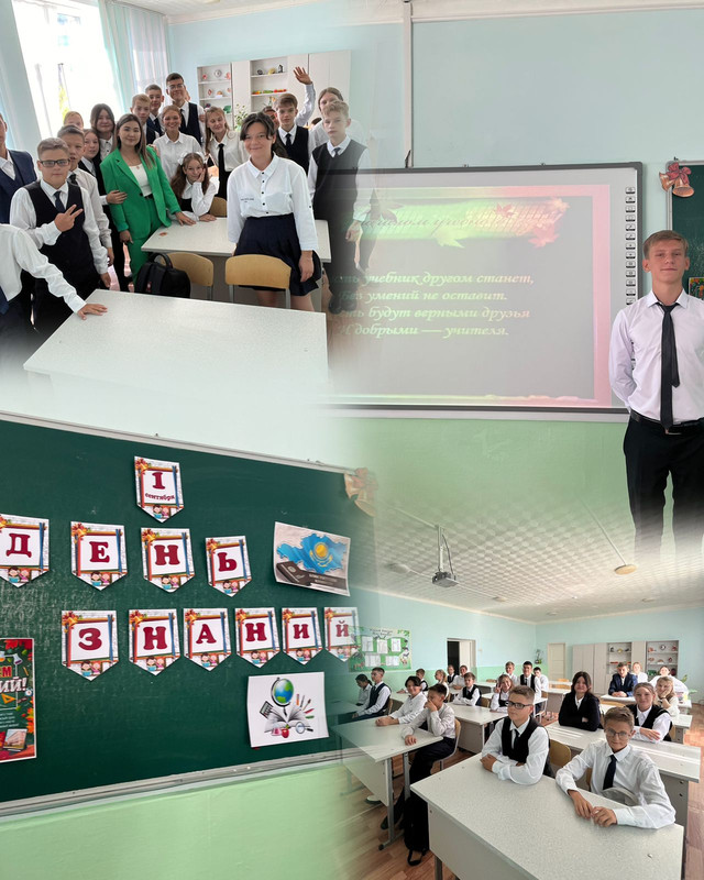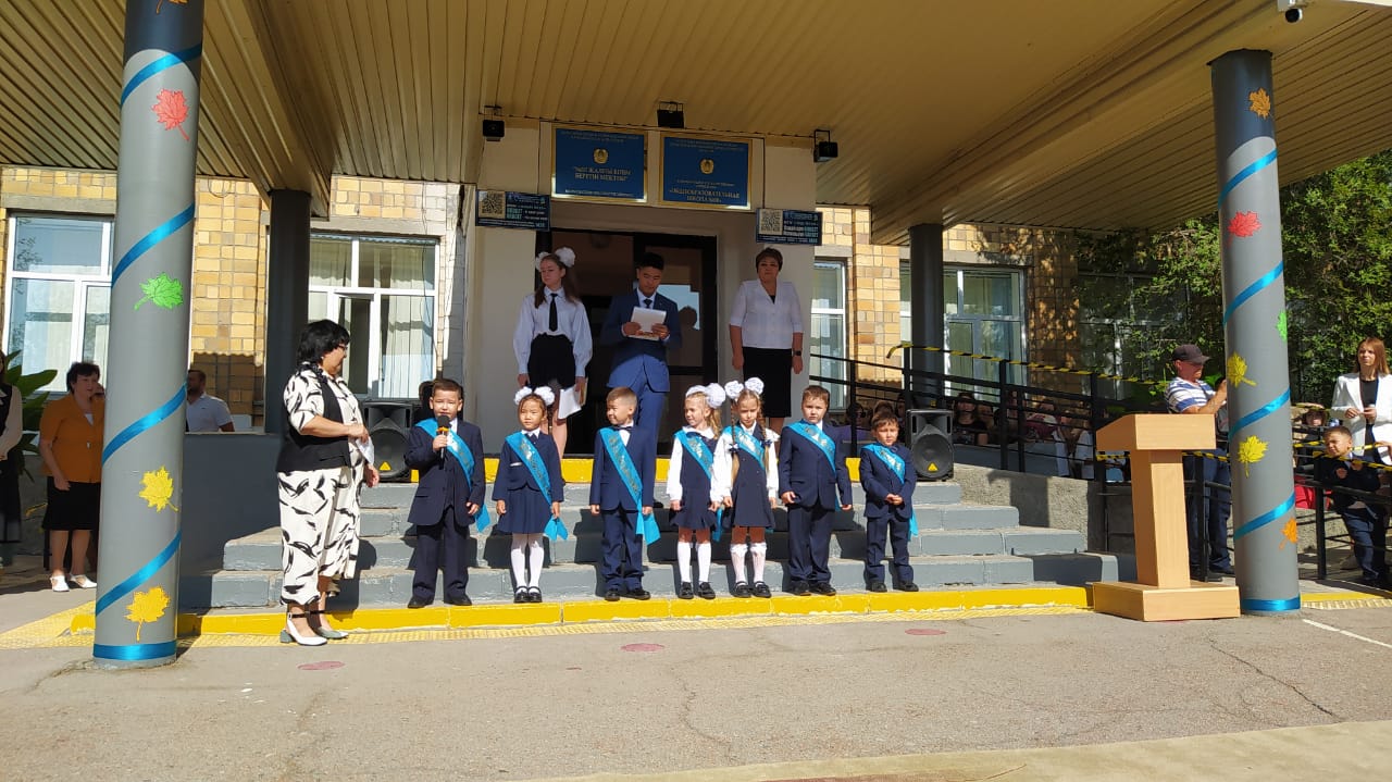 Ребята всех возрастов 1 сентября 2023 года собрались после летнего отдыха во дворе родной школы. Праздничное настроение придавали школьные песни. Нарядные и отдохнувшие, ученики выстроились на площади перед школой. В 10.00 часов прозвучали фанфары, возвестившие о начале торжественной линейки, посвященной Дню Конституции и Дню знаний. Под звуки школьного вальса участники танцевального коллектива исполнили хореографическую композицию «Первосентябрьский вальс». Ведущие линейки ученица 10 класса Филиппова Ангелина и ученик 8 класса Шаймольдин Олжас на 3-х языках поприветствовали всех присутствующих и пригласили первоклассников со своими первыми учителями наторжественную линейку. Школа пополнилась 81 первоклассником. Вот теперь вся школа в сборе! Праздник мы начать готовы!Торжественная линейка началась с исполнения Государственного Гимна РК.