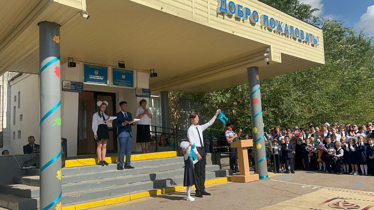 Наступило время первого школьного звонка в этом учебном году, который звонко оповестил всех о начале классного часа «МЕКТЕБІМ-МЕЙІРІМ МЕКЕНІ». Право дать первый звонок в новом учебном году было предоставлено ученице 1класса Ивановой Дарье и ученику11 класса, победителю дебатных турниров, отличнику учебы Кичигину Ярославу.