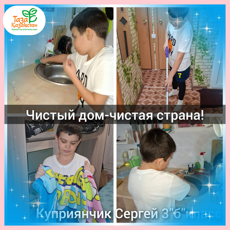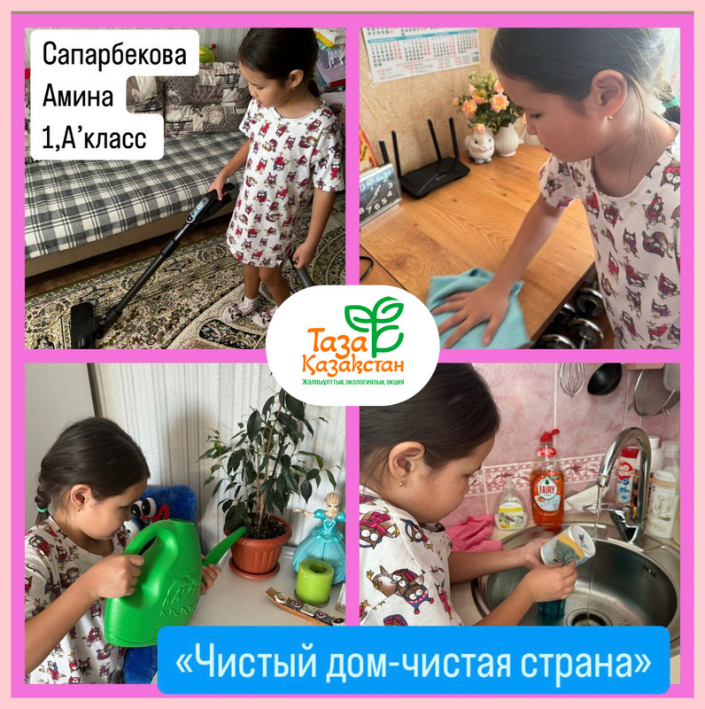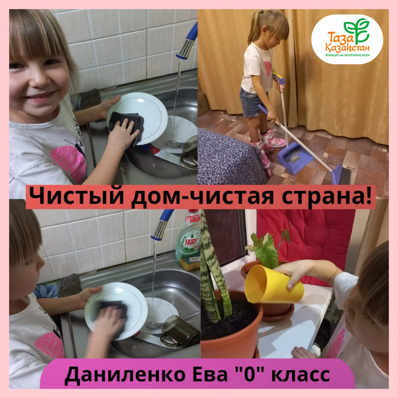 «Таза үй-таза ел!»-деп біздің бастауыш сынып оқушылары осылай шешті. «Таза Қазақстан» республикалық акциясы аясында балалар сіз тұратын жерде тазалық пен тәртіп орната бастады. Өйткені, таза үйде өмір сүру-әдеті таза елде өмір сүруді әдетке айналдырады!
