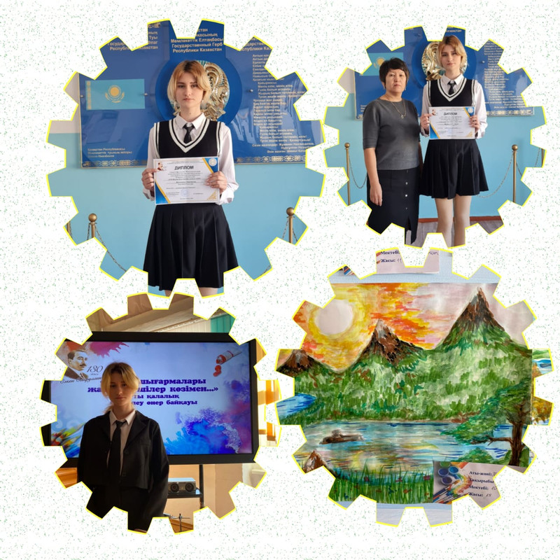 Ақиық ақын Сәкен Сейфуллиннің 130 жылдығына орай "Сәкен шығармалары жас суретшілер көзімен..." атты қалалық өнер байқауы. Железнова Анастасия 3 орын. Жетекшісі: Ахметова Данагул Тургановна.