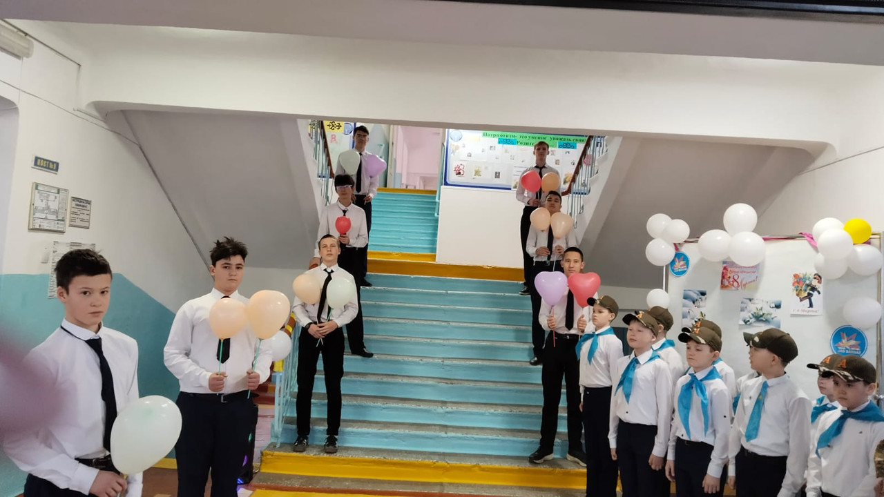 7 марта 2025 года. Рано утром в школу спешили мальчики из отряда «Жас сарбаз» и представители от каждого класса. Этим ребятам выпала честь встречать женскую половину коллектива школы и поздравлять с праздником. В фойе звучали песни про 8 марта, создавая праздничное настроение. Педагогам и сотрудникам школы ребята вручили воздушные шарики с добрыми весенними пожеланиями.