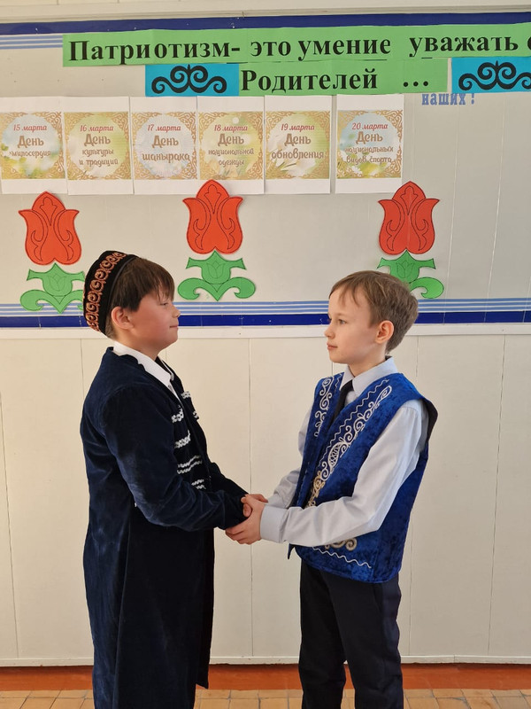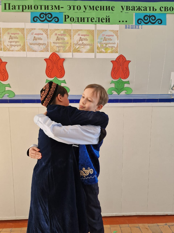 14 наурыз күні таңертең мектеп фойесінде Наурыз туралы мерекелік әндер шырқалды, келген оқушылар, педагогтар бір-бірін мемлекеттік тілде қарсы алды, мерекемен құттықтады, бір-бірін құшақтап, кешірім сұрады. Күн жақсы мерекелік көңіл-күйден басталды!
