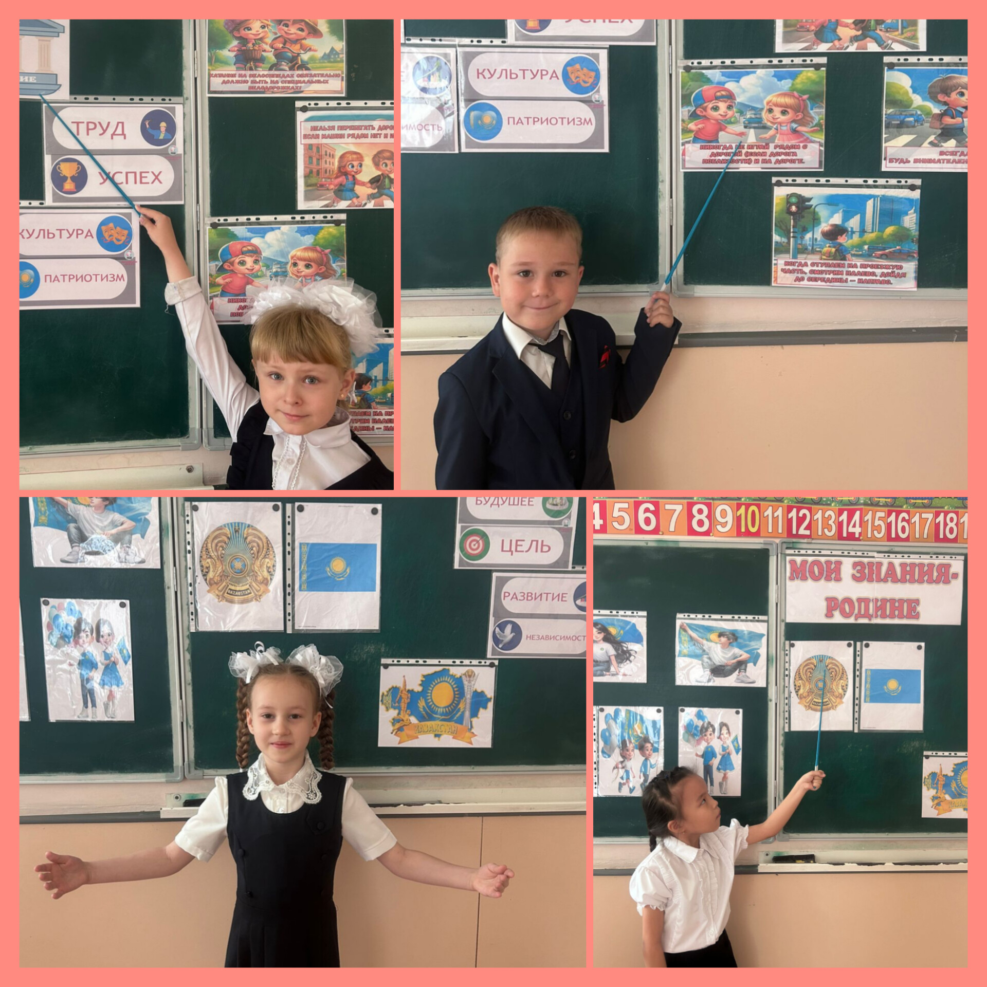2025 жылғы 23 мамырда біздің мектептің барлық бастауыш сыныптарында оқу жылының салтанатты аяқталуына арналған «Менің білімім – Отанға» атты бірыңғай сынып сағаты өтті.