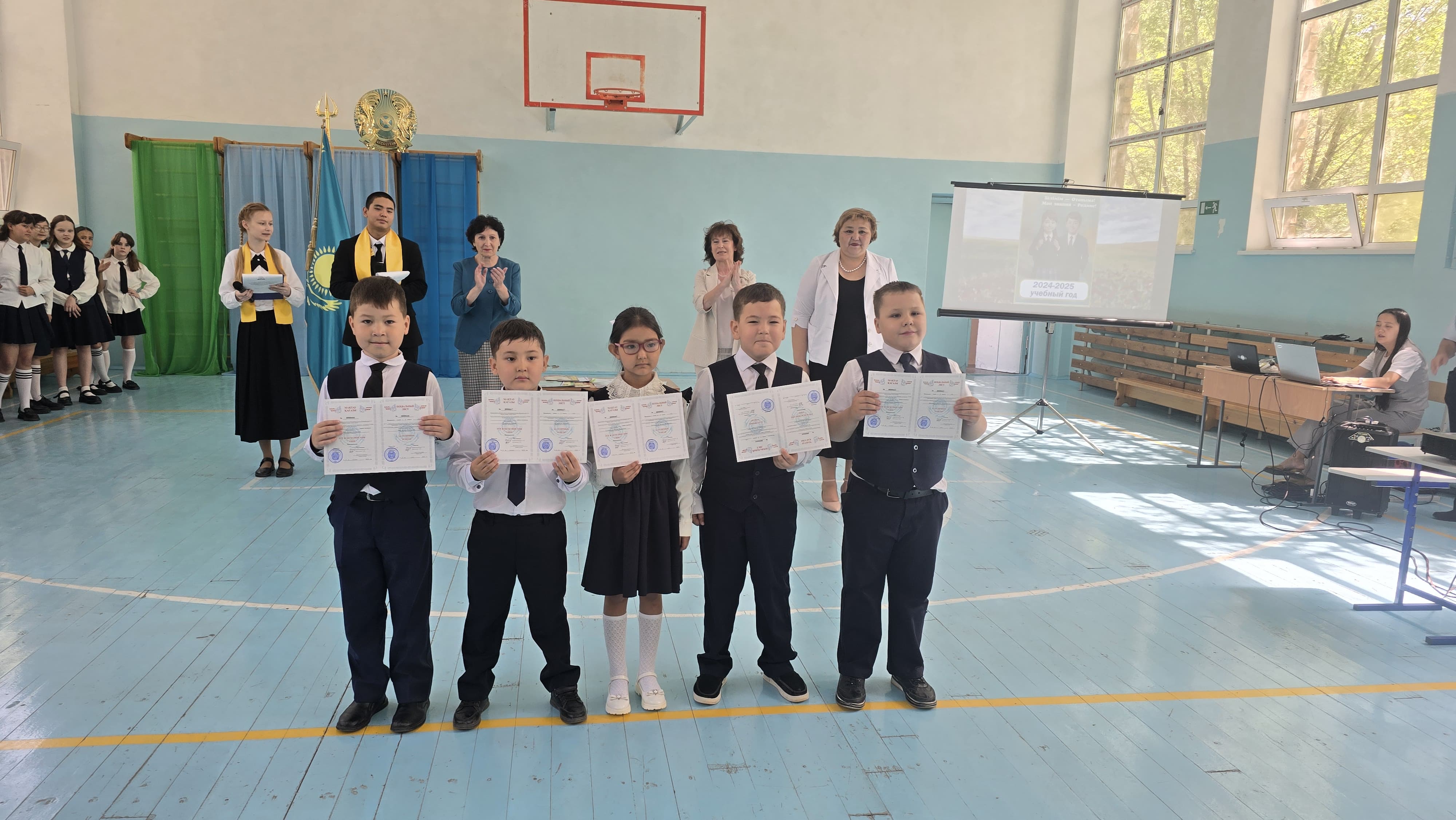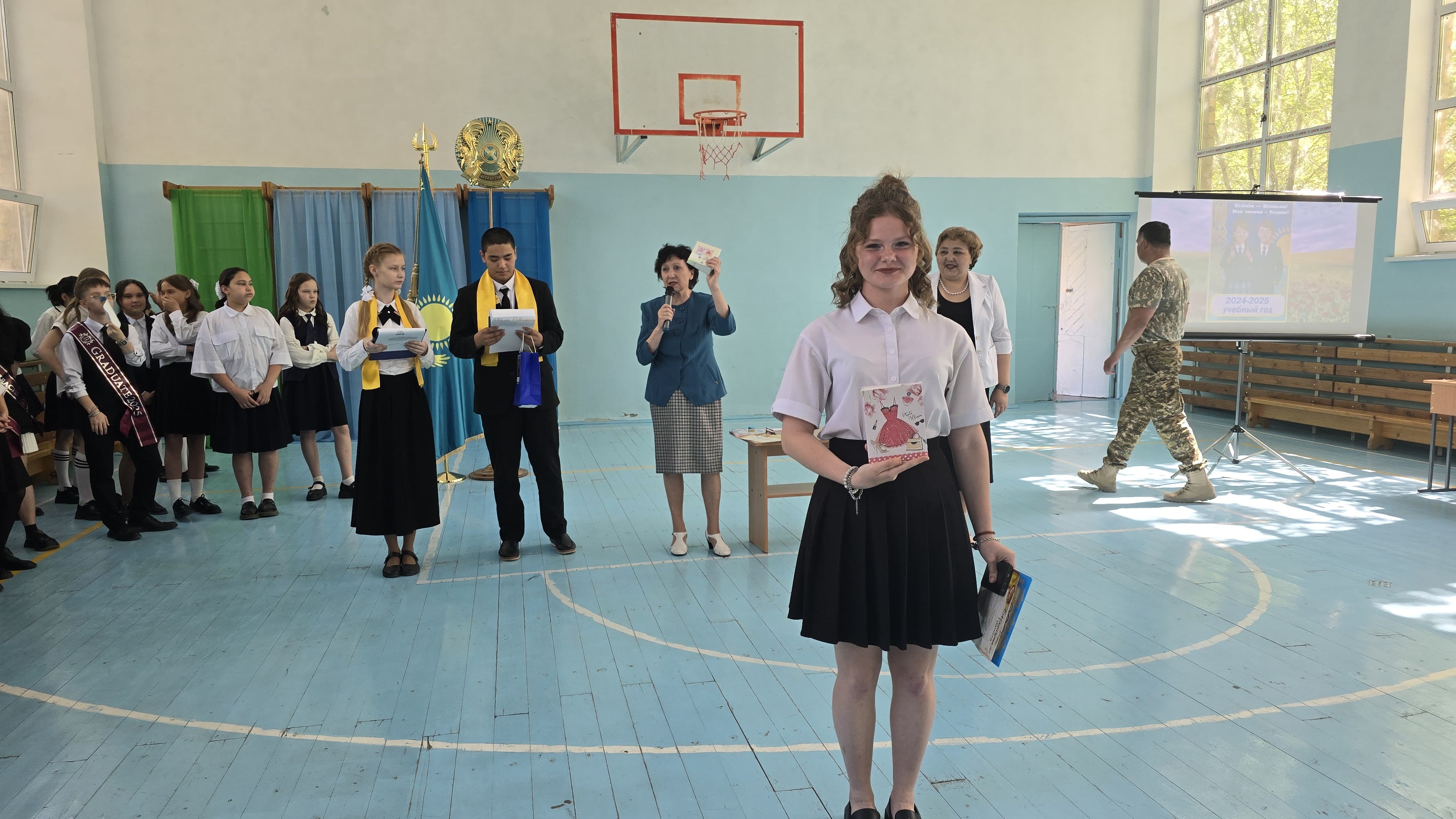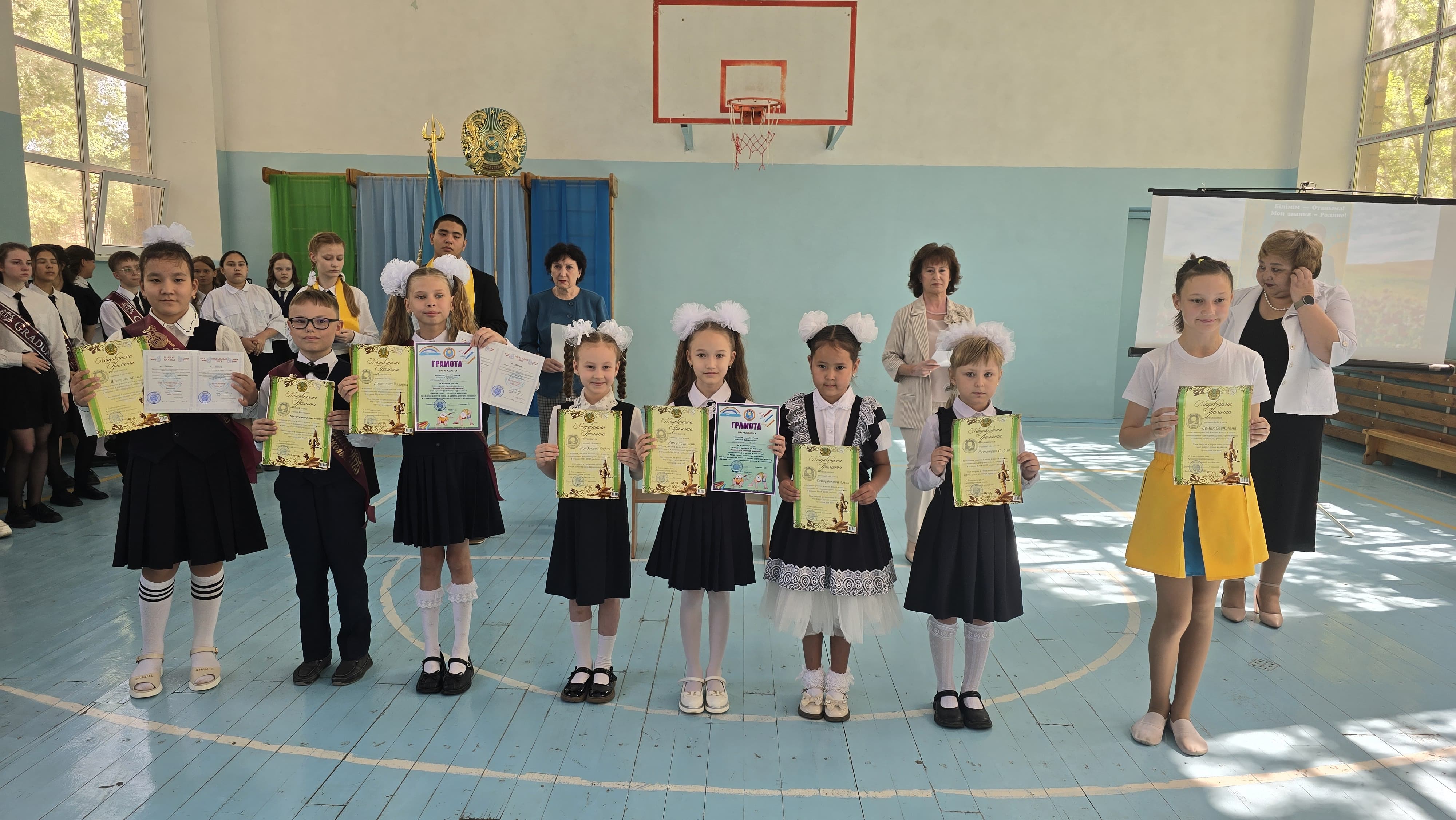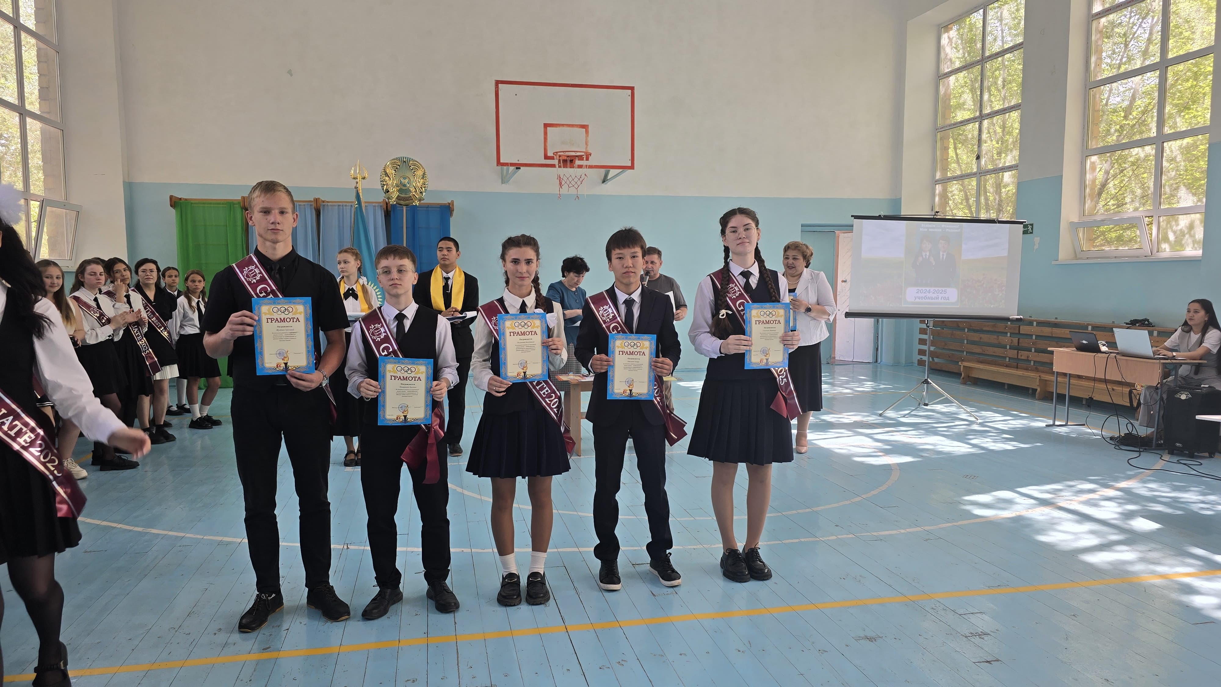 23 мая в КГУ «ОШ №10» проведены торжественные линейки, посвященные завершению 2024 – 2025 учебного года. Ведущие линейки Президент школы Шаймольдин Олжас и победитель городского конкурса чтецов Миловацкая Данель начали линейку словами приветствия всех учащихся, учителей и объявили об открытии линейки. В зале прозвучал Государственный Гимн РК. Ведущие предоставили слово директору школы Укпешовой С.Г., которая поздравила всех с успешным завершением учебного года и пожелала отличных летних каникул. В адрес педагогов школы прозвучали слова благодарности за те знания, которые они дают ученикам. После основных поздравлений началось награждение ребят- отличников. А сколько в школе десятой спортсменов! Учитель физической культуры Пестов Ю.В. объявил о присуждении звания победителей в конкурсе «Класс года» в номинации «Спорт- 2025». Ими стали учащиеся 7а,7в,9а и 10 классов. Грамотами были также награждены лучшие спортсмены школы! В течение учебного года на линейках всегда проводилось награждение участников различных конкурсов, мероприятий. Пришло время получать заслуженные награды учащимся – лидерам ученической организации. Грамотами и ценными подарками были награждены Президент школы Шаймольдин Олжас, Президент 10 кл. Гончар Ксения, Президент 9 «б» кл. Бахаева Элиза, художник - оформитель Железнова Анастасия, чьи творческие работы украшали праздники и выставки. Грамотами также награждены учащиеся – участники школьных конкурсов, посвященных Дню матери и Дню семьи.