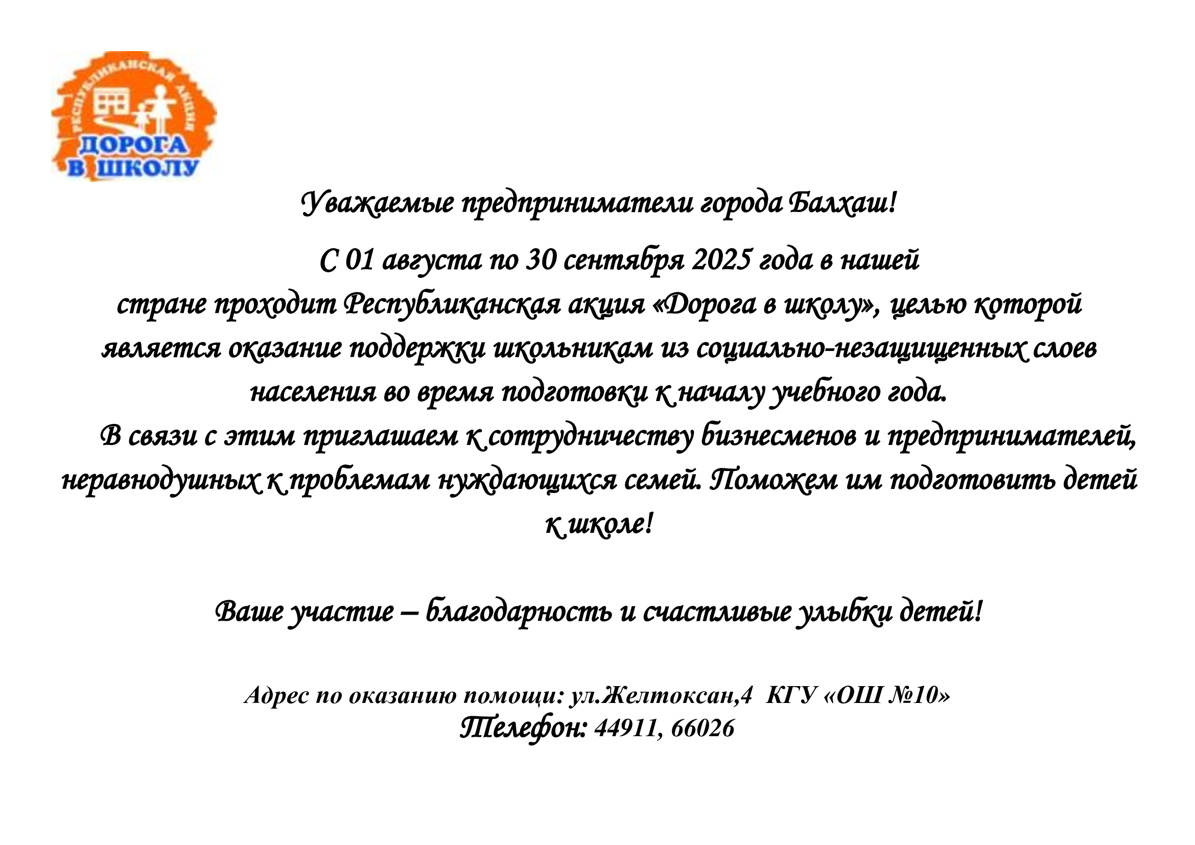 «Мектепке жол!» Республикалық акция!