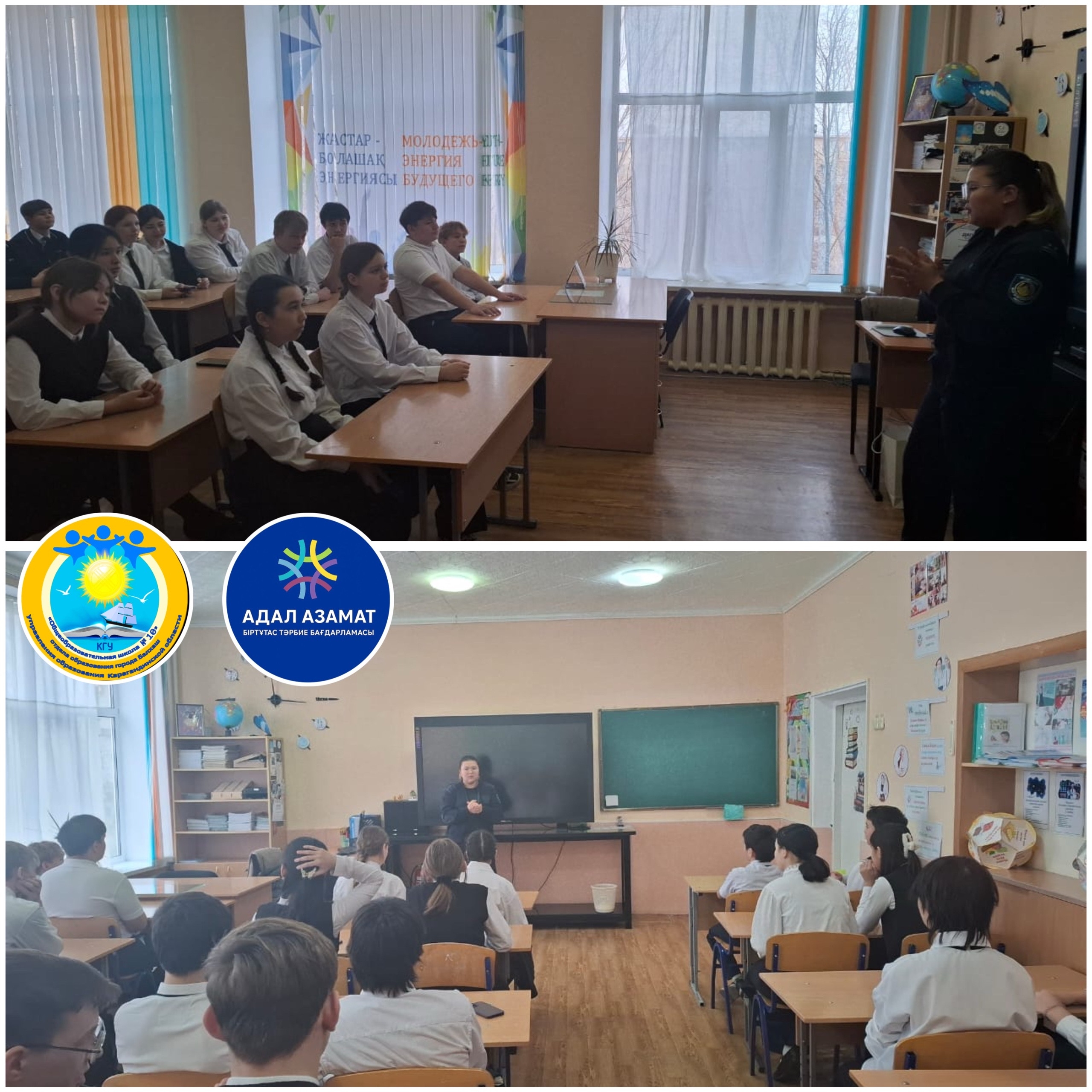 12.01.2026 года в рамках ОПМ «Закон и порядок» Жанатқызы Камила провела профилактическую лекцию для учащихся 8–9-х классов с охватом 35 учащихся на тему: «Административная и уголовная ответственность».