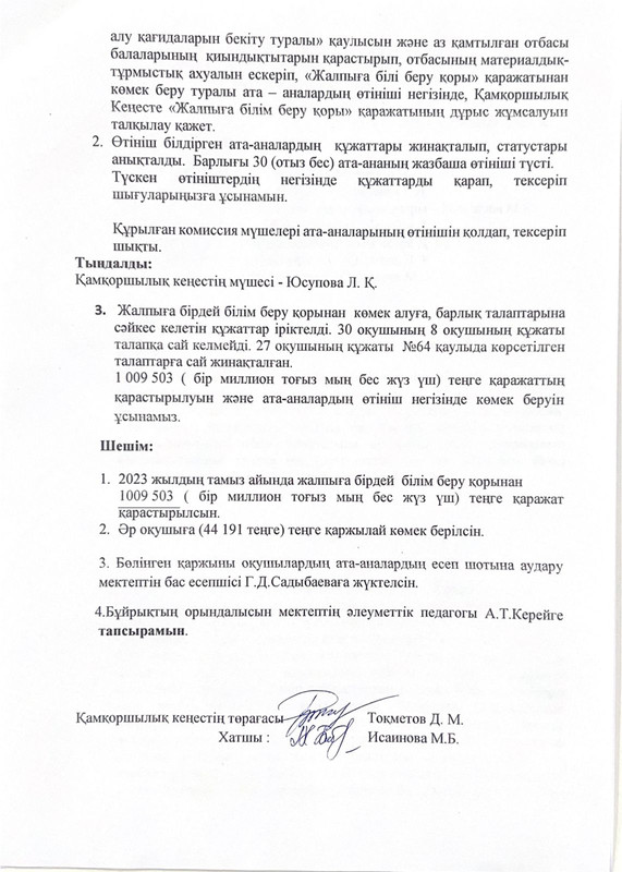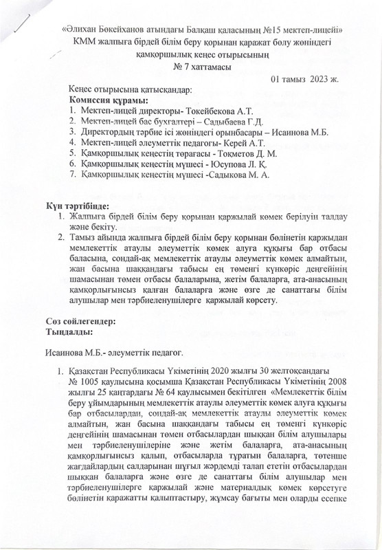 Қамқоршылық Кеңесі отырысының №7 хаттамасы