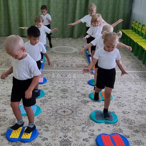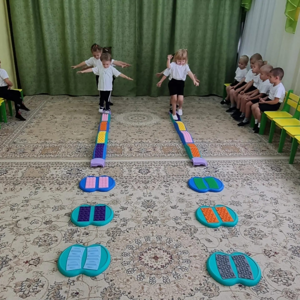В КГКП «Детском саду» Ручеек»средней группе прошла организованная деятельность по физической культуре. Задача: развивать у детей осязательные способности ног.