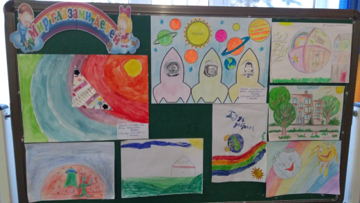 Оформлена выставка детских работ в фойе школы "Мир глазами детей".